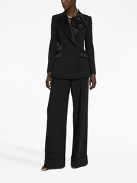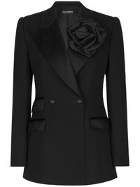 floral-applique double-breasted blazer Highlights - Black - Virgin wool blend - Wide peak lapels - Satin trim - Floral applique - Double-breasted button fastening - Three front flap pockets - Shoulder pads - Long sleeves - Buttoned-cuff sleeves - Straight hem Made in Italy Composition Virgin Wool 76%, Silk 17%, Polyester 5%, Spandex/Elastane 2% SIZE & FIT Measurement SLEEVE LENGTH 29.92 in(76 cm) LENGTH 27.16 in(69 cm) WAIST 31.49 in(80 cm) BUST 35.43 in(90 cm) Washing instructions Read Manufacturer Guidelines