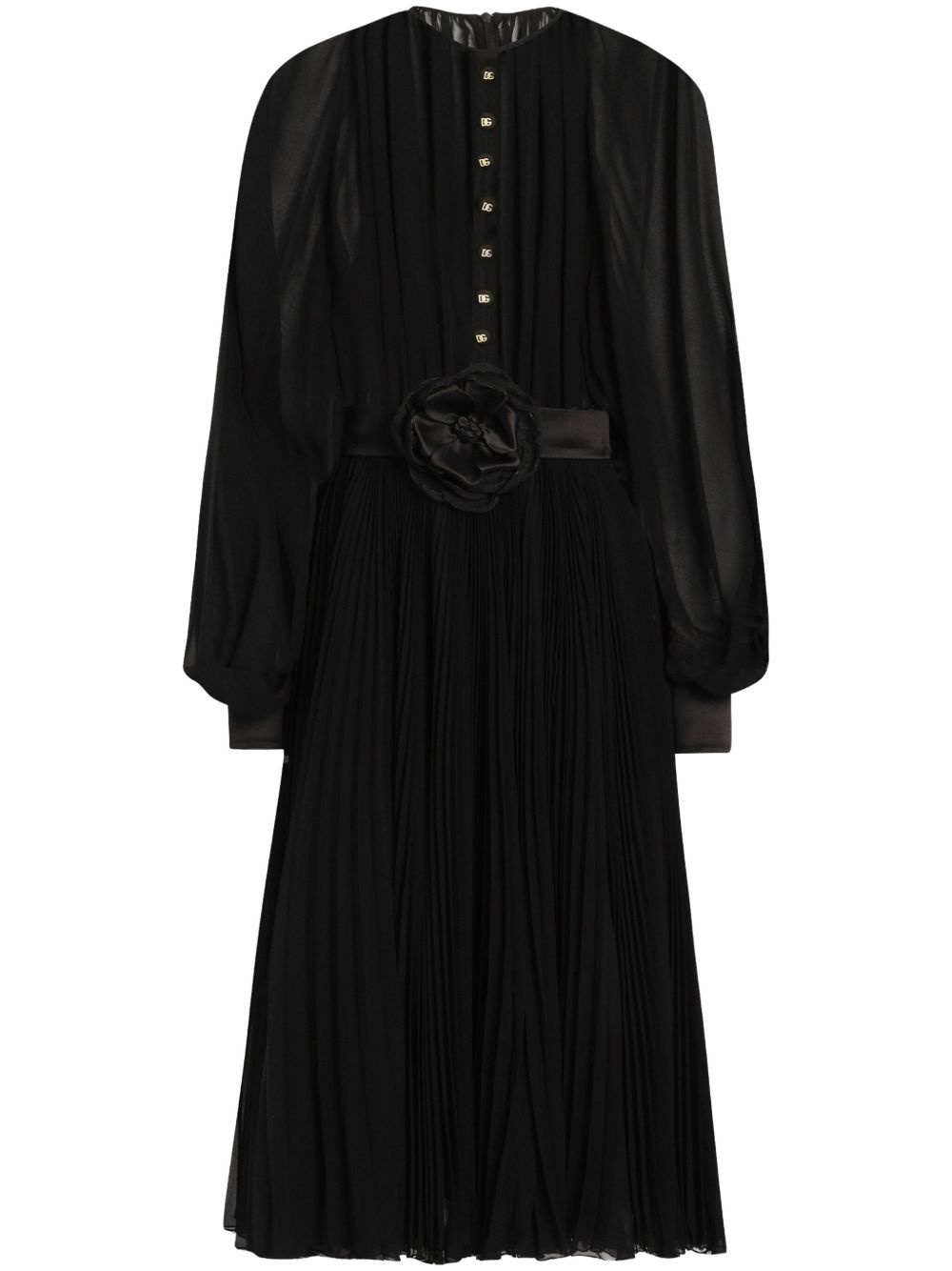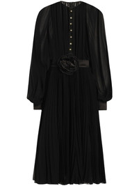 floral-applique midi dress Highlights - Black - Front button fastening - Concealed rear zip fastening - Floral applique - Fully pleated Made in Italy Composition Lining: Silk 91%, Spandex/Elastane 9% Outer: Polyester 85%, Silk 15%