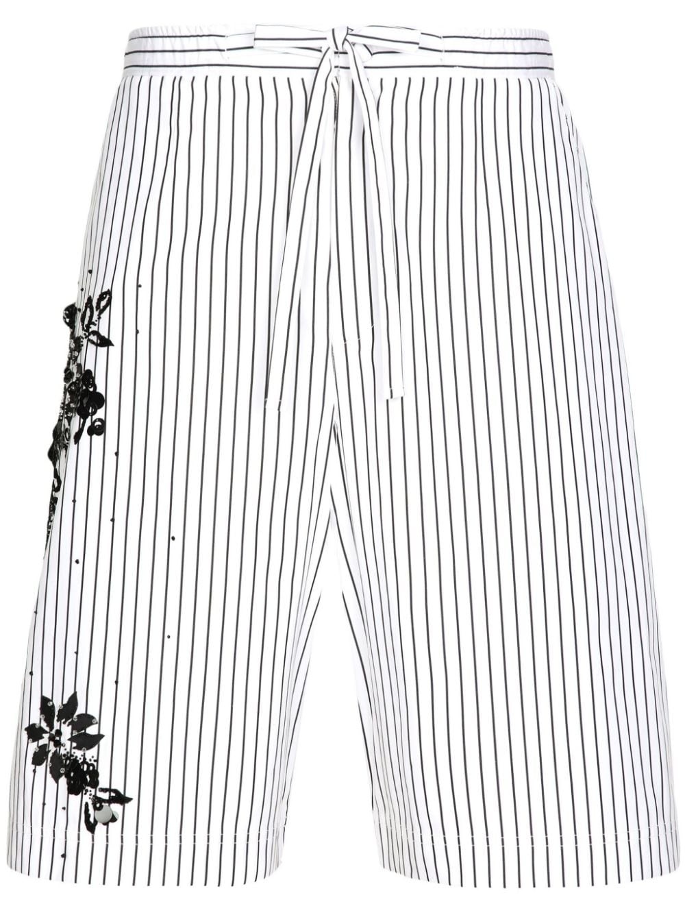 floral-detail striped bermuda shorts Highlights - White/black - Cotton - Poplin texture - Vertical stripe print - Floral detail - Elasticated drawstring waistband - Two diagonal pockets to the sides - Straight hem - Knee-length Made in Italy Composition Cotton 100%