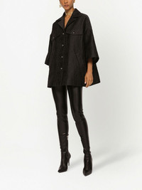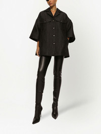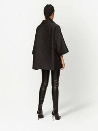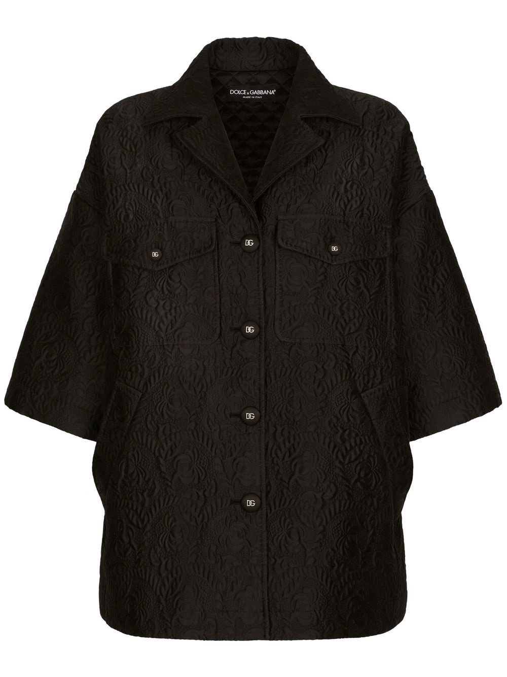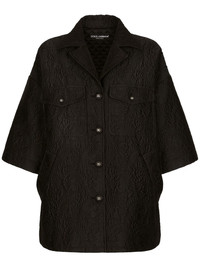 floral-jacquard short cape Dolce & Gabbana gives their romantic aesthetic a dark twist for SS23. As presented by the design of this jacket, the floral-jacquard construction arrives in an all-black colourway. Highlights - Black - Patterned jacquard - Notched collar - Front button fastening - Logo-embossed buttons - Three-quarter length sleeves - Two chest flap pockets - Slip pockets to the sides Made in Italy Composition Outer: Cotton 64%, Polyester 23%, Silk 13% Lining: Silk 100%