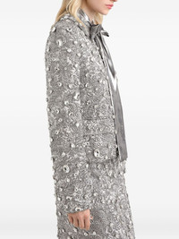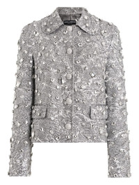 floral-jacquard single-breasted jacket Highlights - Silver-tone - Crystal embellished - Single-breasted - Button fastening - Flap pockets Made in Italy Composition Outer: Metallic Fibre 33%, Acrylic 32%, Virgin Wool 16%, Silk 13%, Polyamide 6% Lining: Polyester 94%, Elastane 6% Washing instructions Read Manufacturer Guidelines