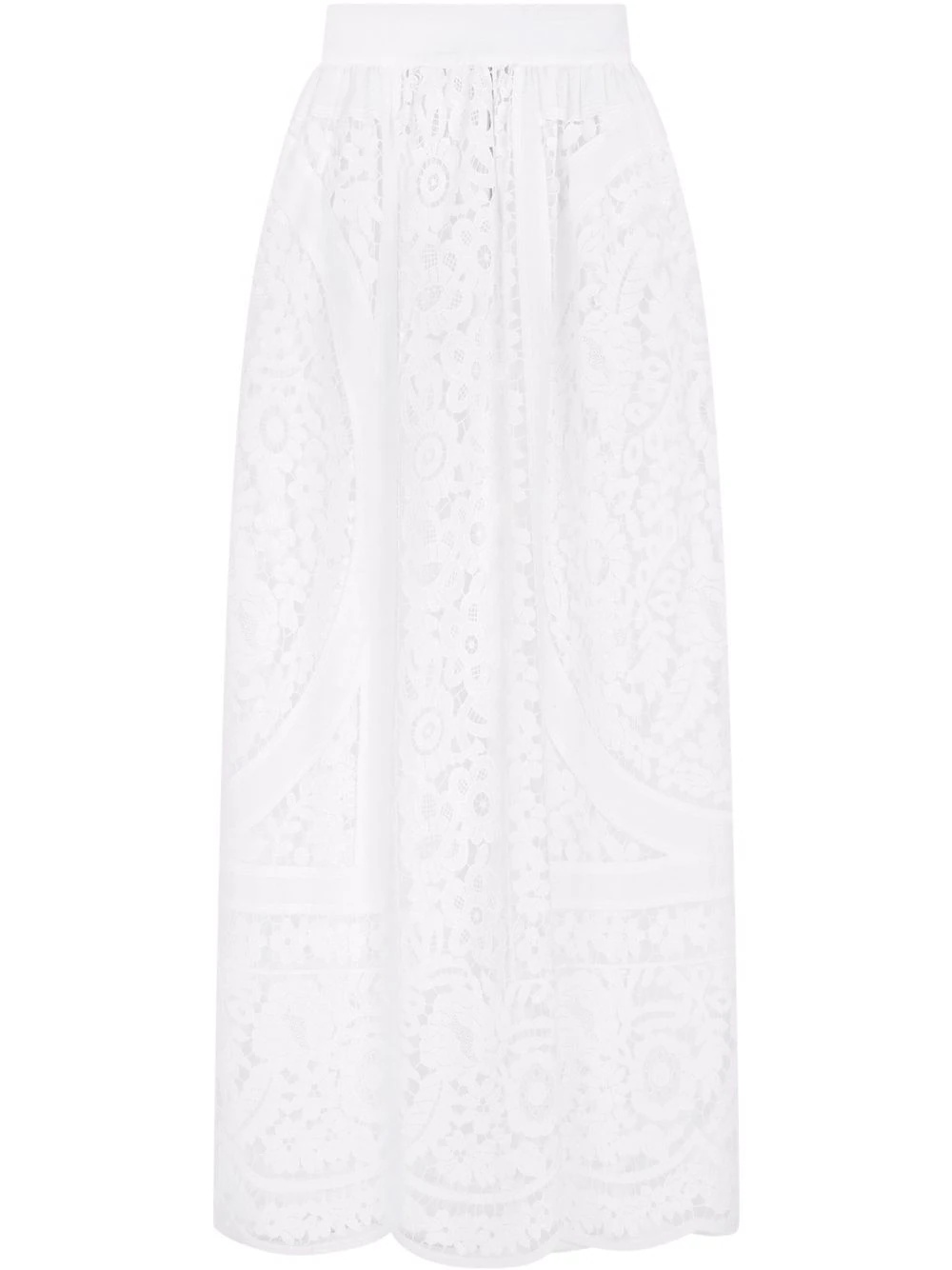 embroidered maxi skirt From Dolce & Gabbana's Tradizione collection where pieces are inspired by Italian history and culture, this flowing skirt boasts a fine floral-lace construction for infusions of romanticism. Meanwhile, the optic white colourway is chosen for a joyful appeal. Highlights - Optical white - Lace embroidery - High-waisted - Concealed rear hook and zip fastening - Lined underskirt Made in Italy Composition Outer: Flax 75%, Cotton 20%, Polyester 7% Lining: Cotton 100%