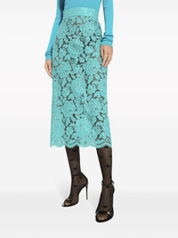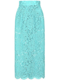 floral-lace high-waisted midi skirt Highlights - Turquoise blue-green - Floral-lace detailing - High-waisted - Below-knee length - Straight hem Made in Italy Composition Viscose 43%, Cotton 34%, Polyamide 23%