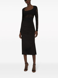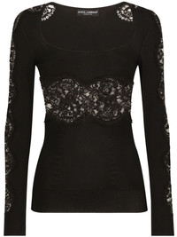floral-lace knit jumper Running away from the brand's usual bold prints and colours, this long-sleeve jumper from Dolce & Gabbana arrives in black. Made from a cotton blend, it has a stretch design enhanced with floral lace inserts. Highlights - Black - Cotton blend - Floral-lace detailing - Square neck - Long sleeves - Straight hem Made in Italy Composition Viscose 52%, Cotton 30%, Polyester 11%, Polyamide 7% Washing instructions Read Manufacturer Guidelines