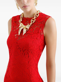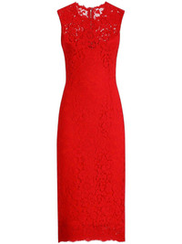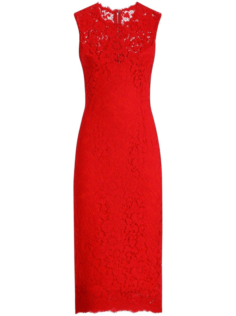 floral-lace midi dress Highlights - Bright red - Concealed rear zip fastening - Rear slit - Crew neck - Sleeveless Made in Italy Composition Inner: Silk 91%, Spandex/Elastane 9% Outer: Cotton 53%, Viscose 37%, Polyamide 10%