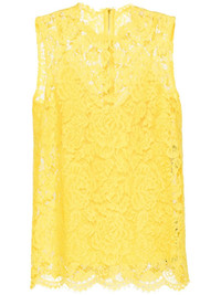 cordonetto-lace top Presented in a vibrant shade of yellow, Dolce & Gabbana's sleeveless blouse boasts an intricate floral corded lace construction. The sheer design is lined with a matching stretch-silk cami top. Highlights - Yellow - Floral-lace detailing - Scallop collar - Concealed rear zip fastening - Sleeveless - Scallop hem - Full lining Made in Italy Composition Outer: Viscose 43%, Cotton 34%, Polyamide 23% Lining: Silk 91%, Spandex/Elastane 1% SIZE & FIT Model measurements Height 5 ft 10 in(1.78 m) Bust/Chest 31.49 in(80 cm) Hips 37 in(94 cm) Waist 23.62 in(60 cm) FittingInformation Designed for a relaxed fit, this piece allows for comfort and movement when worn The internal slip sits just away from the body, offering a close yet comfortable fit Made from a midweight fabric This piece fits true to size – take your usual size Washing instructions Dry Clean Only