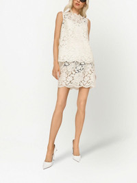 floral-lace sleeveless top Floral-lacing is no stranger to Dolce & Gabbana’s design aesthetic. The Sicilian fashion house boasts this sleeveless top in a romantic floral-lace and semi-sheer construction, synonymous with the brand's signature look. Highlights - Ivory white - Floral-lace detailing - High neck - Sleeveless - Semi-sheer construction - Scallop edge Made in Italy Composition Lining: Silk 91%, Spandex/Elastane 9% Outer: Rayon 51%, Cotton 24%, Nylon 20%, Spandex/Elastane 5% SIZE & FIT Measurement LENGTH 23.62 in(60 cm)