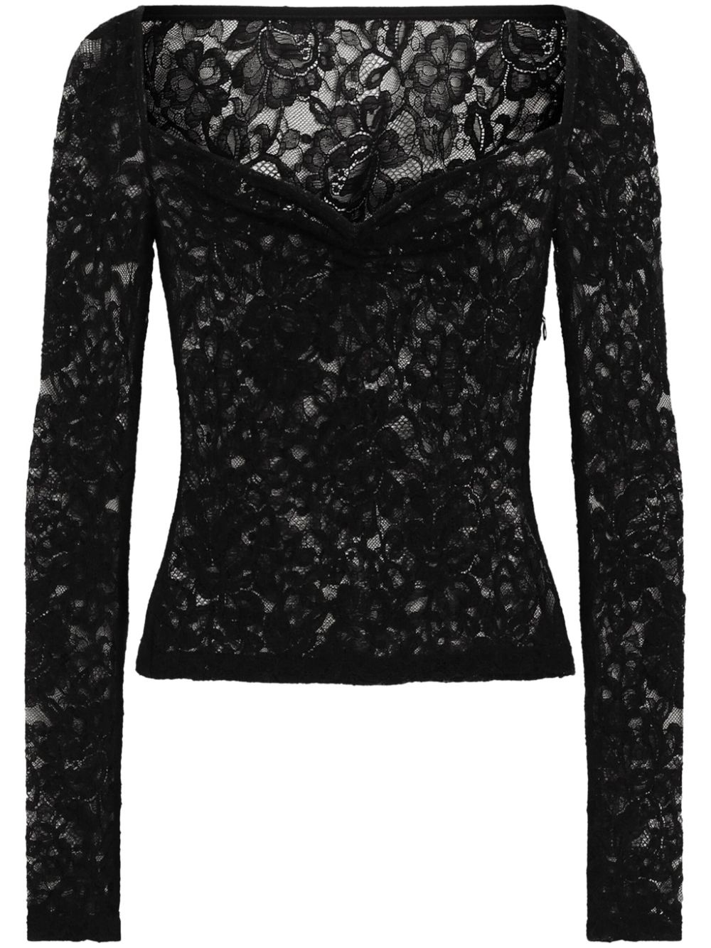 floral-lace sweetheart-neck top Highlights - Black - Concealed side zip fastening - Long sleeves - Unlined - Draped detailing Made in Italy Composition Nylon 100% Washing instructions Read Manufacturer Guidelines