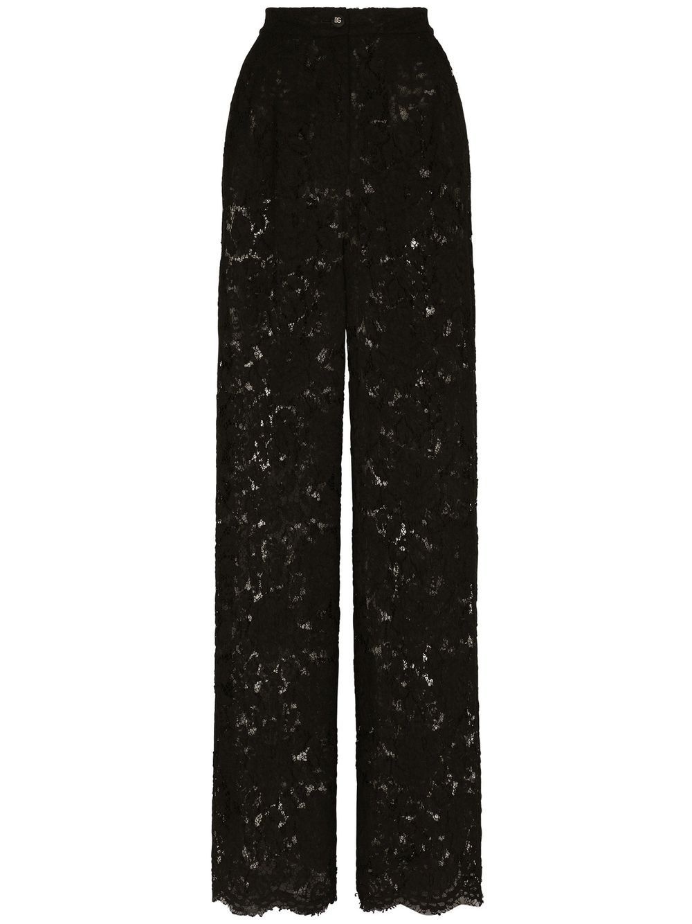 DNA floral lace tailored trousers These tailored trousers from Dolce & Gabbana tap into the Italian house's romantic and whimsical approach to garments for SS23. Boasting a floral lace construction, they sit high at the waist for an elongating silhouette. Highlights - Black - Cotton blend - Floral-lace detailing - Tailored design - High-waisted - Wide leg - Front button and zip fastening Made in Italy Composition Rayon 51%, Cotton 24%, Nylon 20%, Spandex/Elastane 5% SIZE & FIT Measurement INSIDE LEG 31.88 in(81 cm) HIPS 33.85 in(86 cm) WAIST 23.62 in(60 cm)