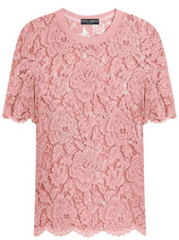 DNA floral lace top Highlights - Powder pink - Ribbed crew neck - Short sleeves - Scallop hem Made in Italy Composition Outer: Viscose 41%, Cotton 35%, Polyamide 24%
