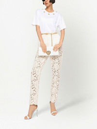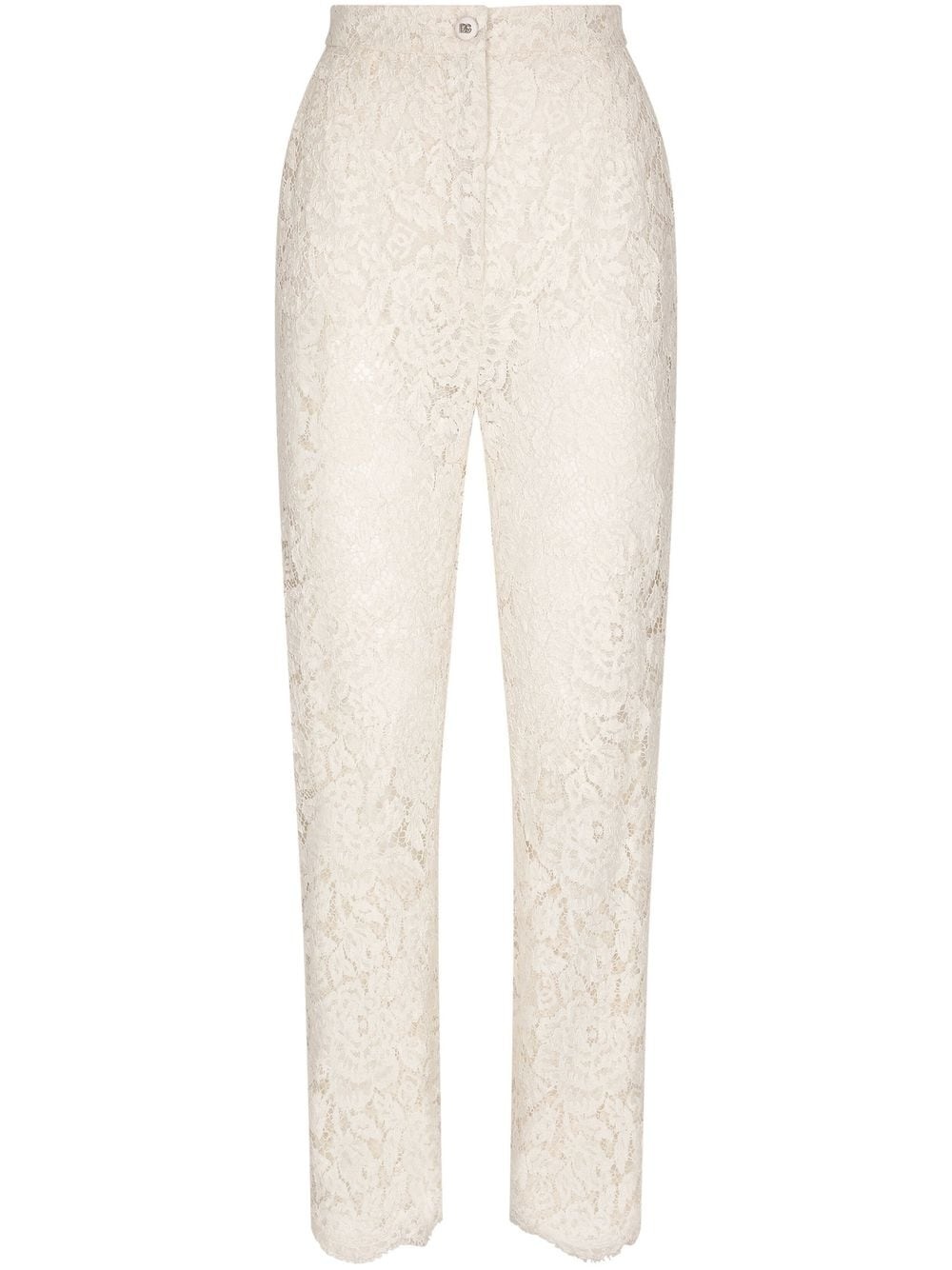 floral-lace trousers Crafted from semi-sheer, daring floral lace, the epitome of Dolce & Gabbana’s signature style. Transforming the trousers into their own, the design is enhanced with the iconic DG logo engraved button, which has remained instantly recognisable since its creation in 1985. Made in Italy Composition Rayon 51%, Cotton 24%, Nylon 20%, Spandex/Elastane 5%