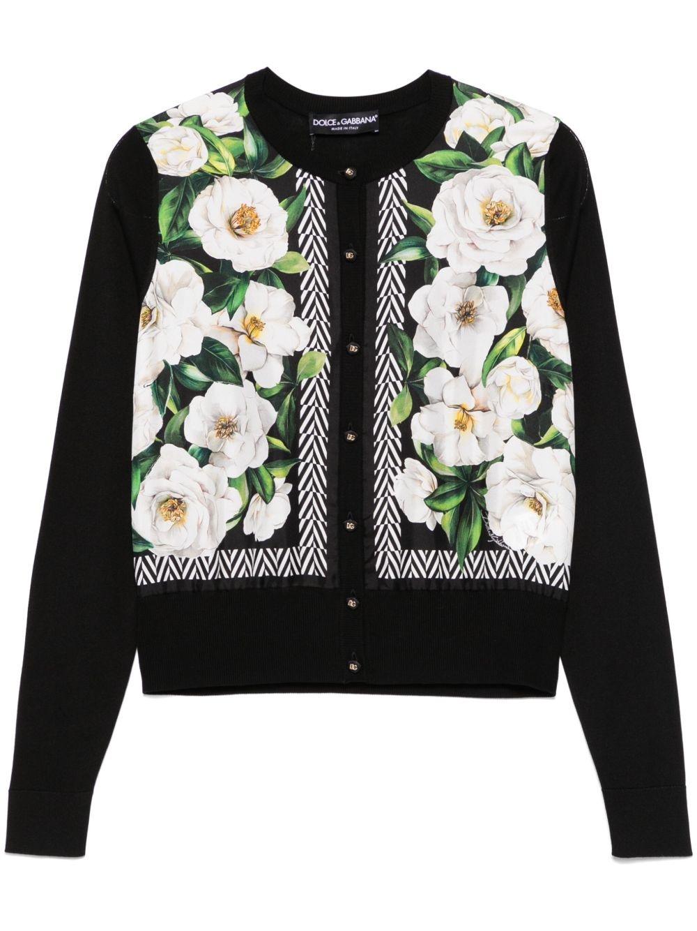 floral-print cardigan Highlights - Black - Front button fastening - Logo-embossed buttons - Crew neck - Long sleeves Made in Italy Composition Silk 100% SIZE & FIT Model measurements Height 5 ft 10 in(1.78 m) Bust/Chest 31.49 in(80 cm) Hips 37 in(94 cm) Waist 23.62 in(60 cm) FittingInformation Designed for a relaxed fit, this piece allows for comfort and movement when worn Made with a lightweight knit, this piece offers some stretch