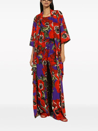Flared charmeuse pants with anemone print