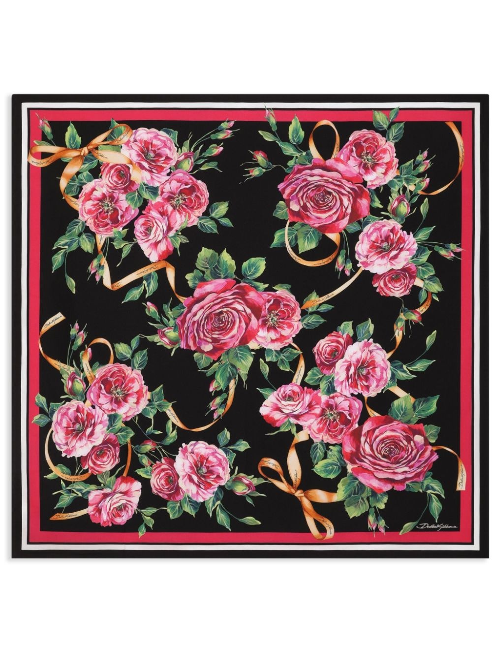 floral-print foulard Highlights - Black - Finished edge - Square shape - Logo print embellishment Made in Italy Composition Outer: Silk 100%