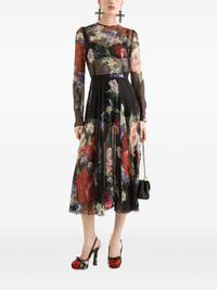 Floral-print chiffon calf-length dress with circle skirt