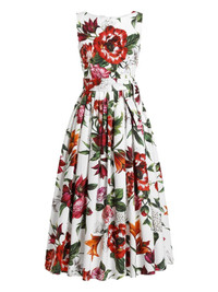 Flower-print sleeveless poplin dress