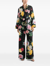 Silk habotai pajama shirt with rose and peony print