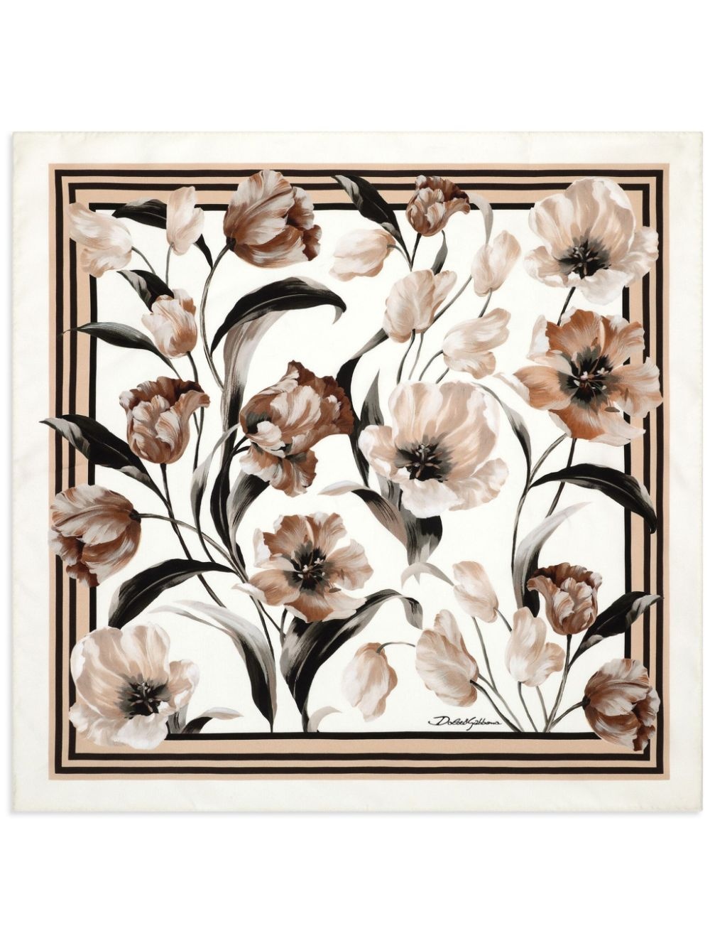 floral-print silk scarf Highlights - White/multicolour - Silk - Twill weave - All-over floral print - Logo-print edge - Square body Made in Italy Composition Silk 100% SIZE & FIT Measurement LENGTH 19.68 in(50 cm) WIDTH 19.68 in(50 cm)