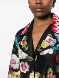 floral-print silk shirt Crafted from smooth silk, this Dolce & Gabbana belted shirt showcases the brand's penchant for refined opulence. A vibrant bouquet-inspired floral print decorates the piece all over. Highlights - Black, multicolour - Silk - All-over floral print - Notched lapels - Long sleeves - Detachable waist belt - Two front patch pockets - Short side slits - Logo print at the hem - Straight hem - Front button fastening Made in Italy Composition Silk 100% SIZE & FIT Model measurements Height 5 ft 11 in(1.8 m) Bust/Chest 31.49 in(80 cm) Hips 36.61 in(93 cm) Waist 24.4 in(62 cm) Measurement SLEEVE LENGTH 18.3 in(46.5 cm) LENGTH 29.52 in(75 cm) WAIST 40.15 in(102 cm) BUST 40.94 in(104 cm) FittingInformation Designed to be unstructured, offering a loose fit throughout The tie fastening gives an adaptable and personalised fit Made from a lightweight non-stretch fabric This piece fits true to size – take your usual size Washing instructions Dry Clean Only
