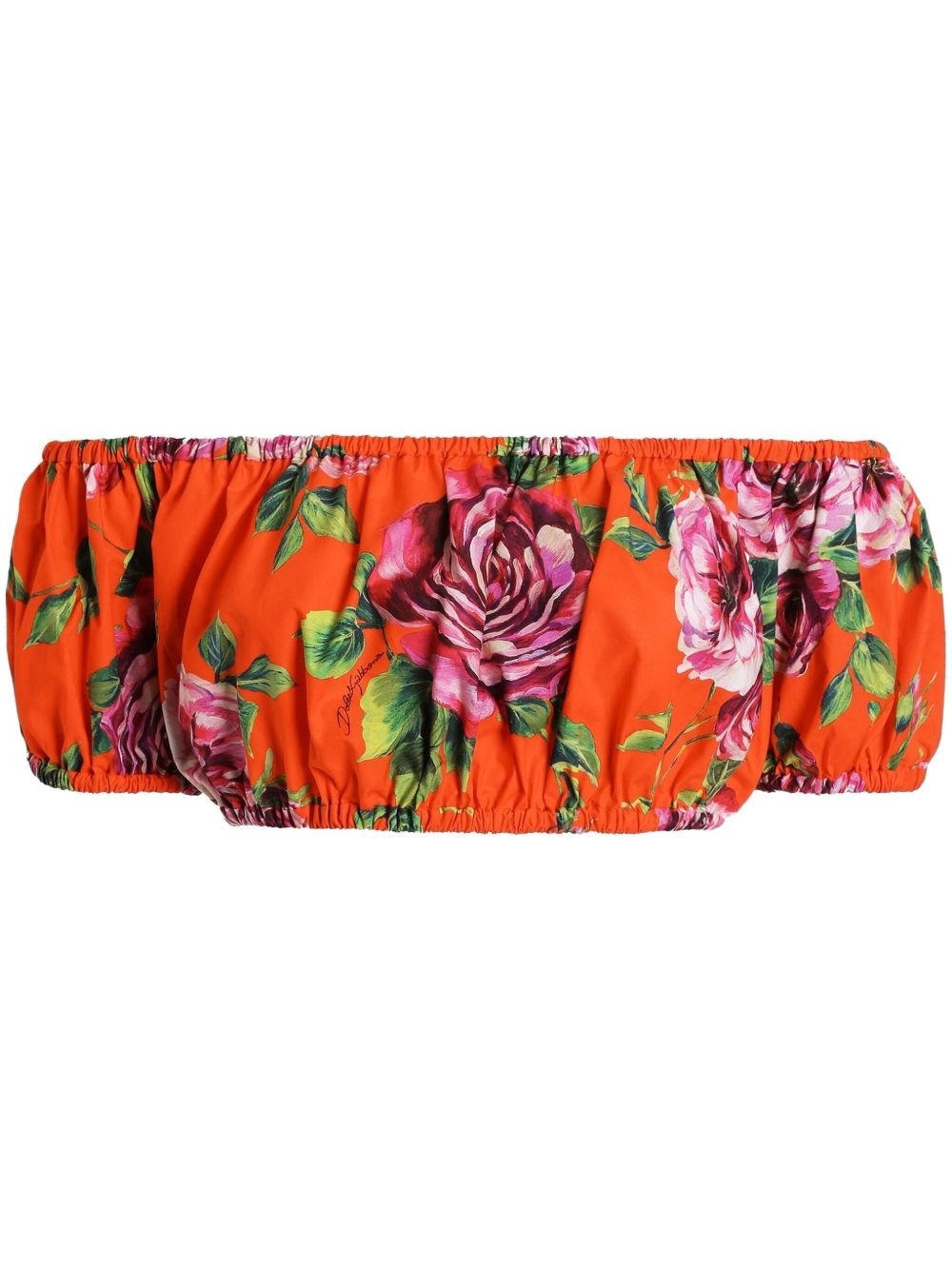 floral-print top Highlights - Bright red - Elasticated trim - Off-shoulder - Bandeau style Made in Italy Composition Outer: Cotton 100%