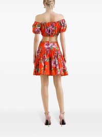 Bardot-neck top in rose-print cotton