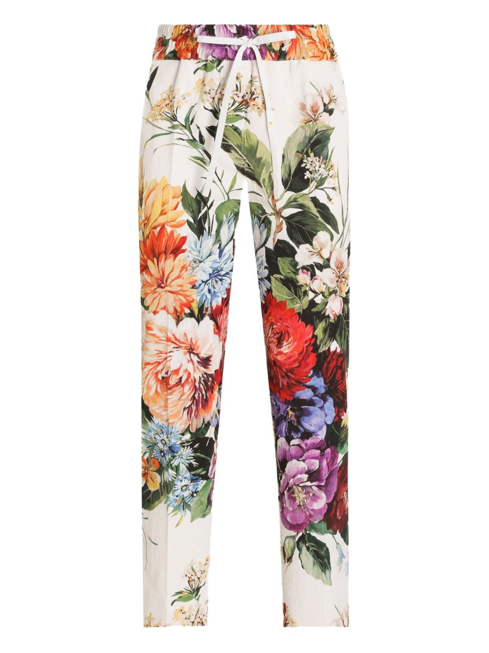 Flower bouquet-print trousers