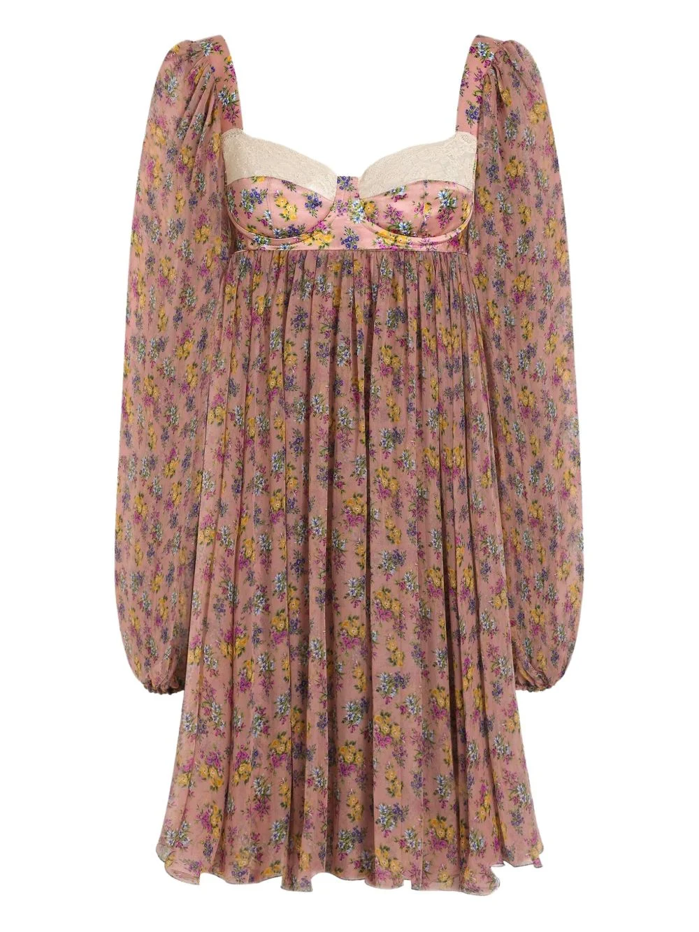 floral puff-sleeve dress Highlights - Pink - Floral print - Square neck - Puff sleeves - Gathered detail - Lace trim Made in Italy Composition Silk 90%, Cotton 9%, Polyamide 1% Washing instructions Read Manufacturer Guidelines