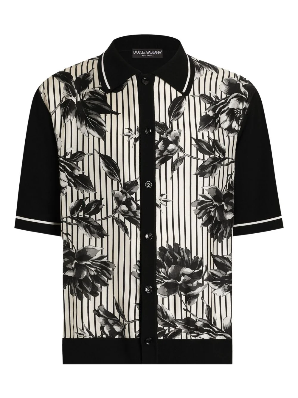 floral striped shirt Highlights - Beige - Floral print - Striped - Button fastening - Short sleeves - Ribbed trims Made in Italy Composition Silk 75%, Cotton 24%, Polyamide 1% Washing instructions Read Manufacturer Guidelines