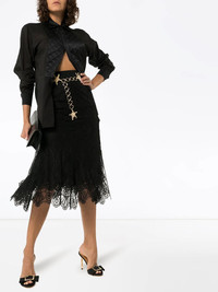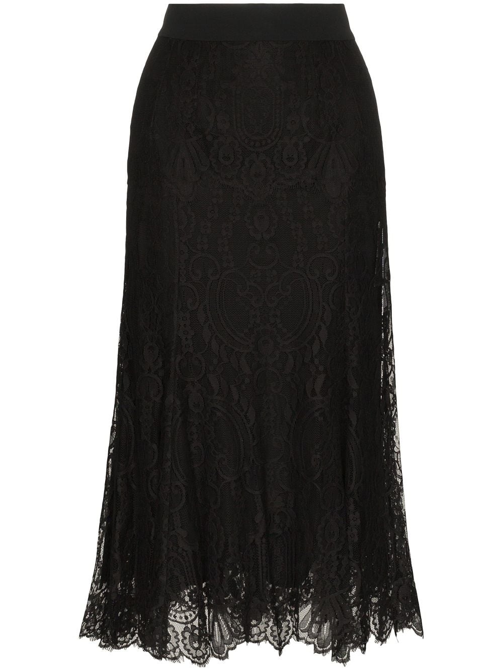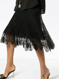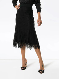 chantilly-lace maxi skirt Highlights - Black synthetic->viscose fluted lace midi skirt from dolce & gabbana featuring a high rise, a concealed rear zip fastening and fluted hem. Made in Italy Composition Lining: Silk 86%, Cotton 8%, Elastane 4%, Polyamide 2% Outer: Cotton 63%, Polyamide 27%, Viscose 5%, Acetate 4%, Elastane 1% SIZE & FIT Model measurements Height 5 ft 10 in(1.78 m) Bust/Chest 33.85 in(86 cm) Hips 34.25 in(87 cm) Waist 24.01 in(61 cm) Measurement WAIST 26.77 in(68 cm) HIPS 34.64 in(88 cm) LENGTH 33.07 in(84 cm) Washing instructions Dry Clean Only
