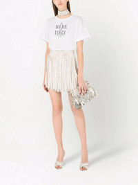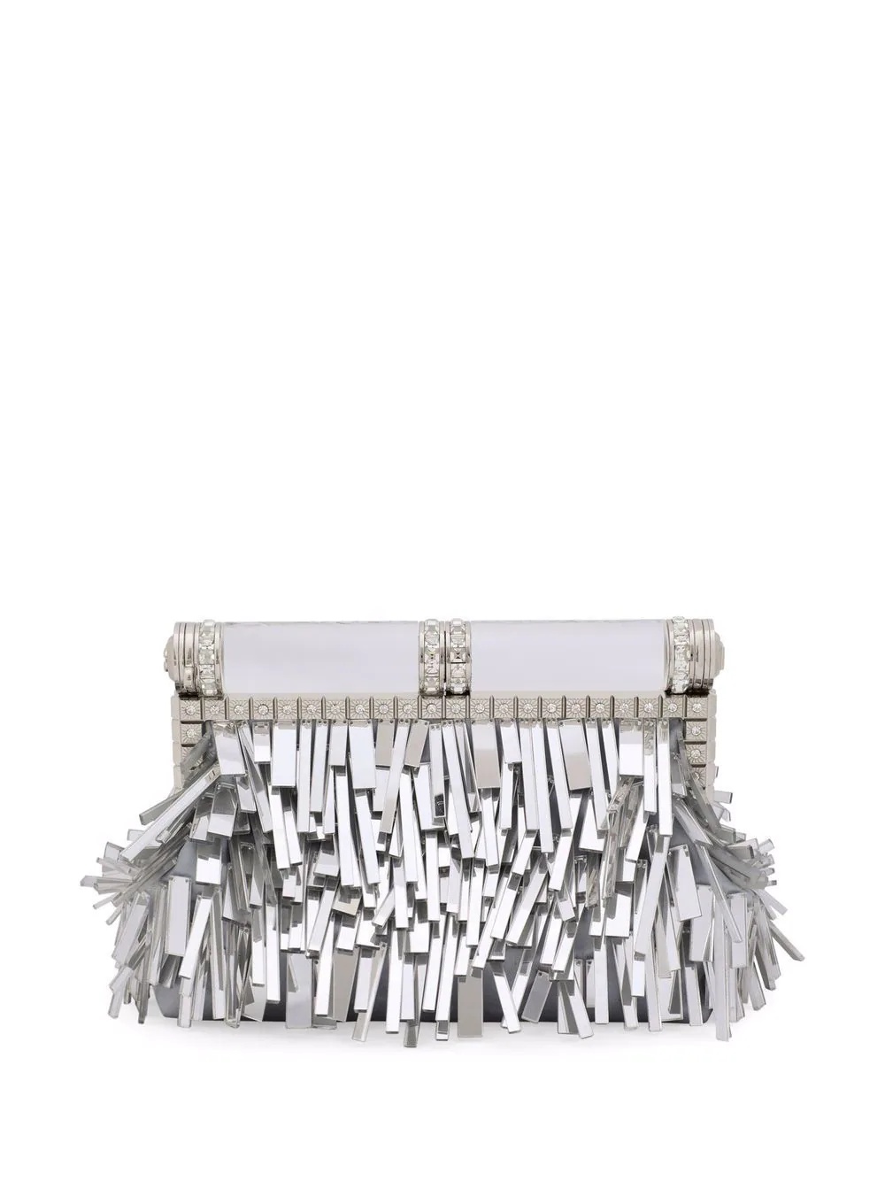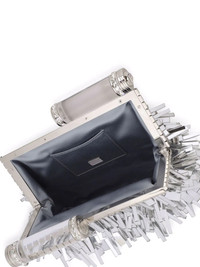 fringed leather clutch bag Highlights - Silver-tone - Nappa leather - Fringe detailing - Crystal embellishment - Metallic effect - Silver-tone hardware - Top clasp fastening - Detachable chain-link shoulder strap - Main compartment - Internal slip pocket - Internal logo plaque - Satin lining - This piece comes complete with a protective dust bag. Made in Italy Composition Outer: Lamb Skin 100% Lining: Rayon 60%, Silk 40%