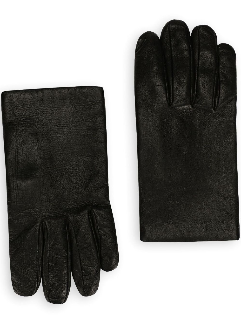 full-finger leather gloves Highlights - Black - Nappa leather - Grained texture - Full-finger design - Elasticated trim - Silk lining Made in Italy Composition Lining: Silk 100% Outer: Lambskin 100%