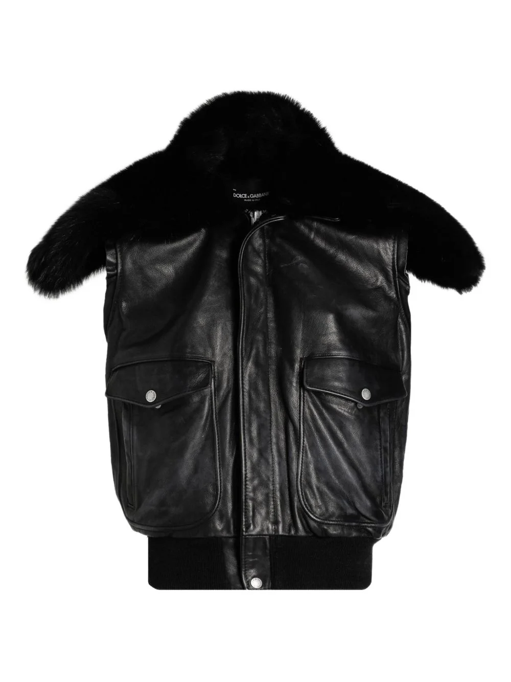 fur-collar leather gilet black leather fur collar sleeveless snap button fastening flap pockets Made in Italy Composition CALFSKIN 75%, Lambskin 25% Washing instructions Read Manufacturer Guidelines