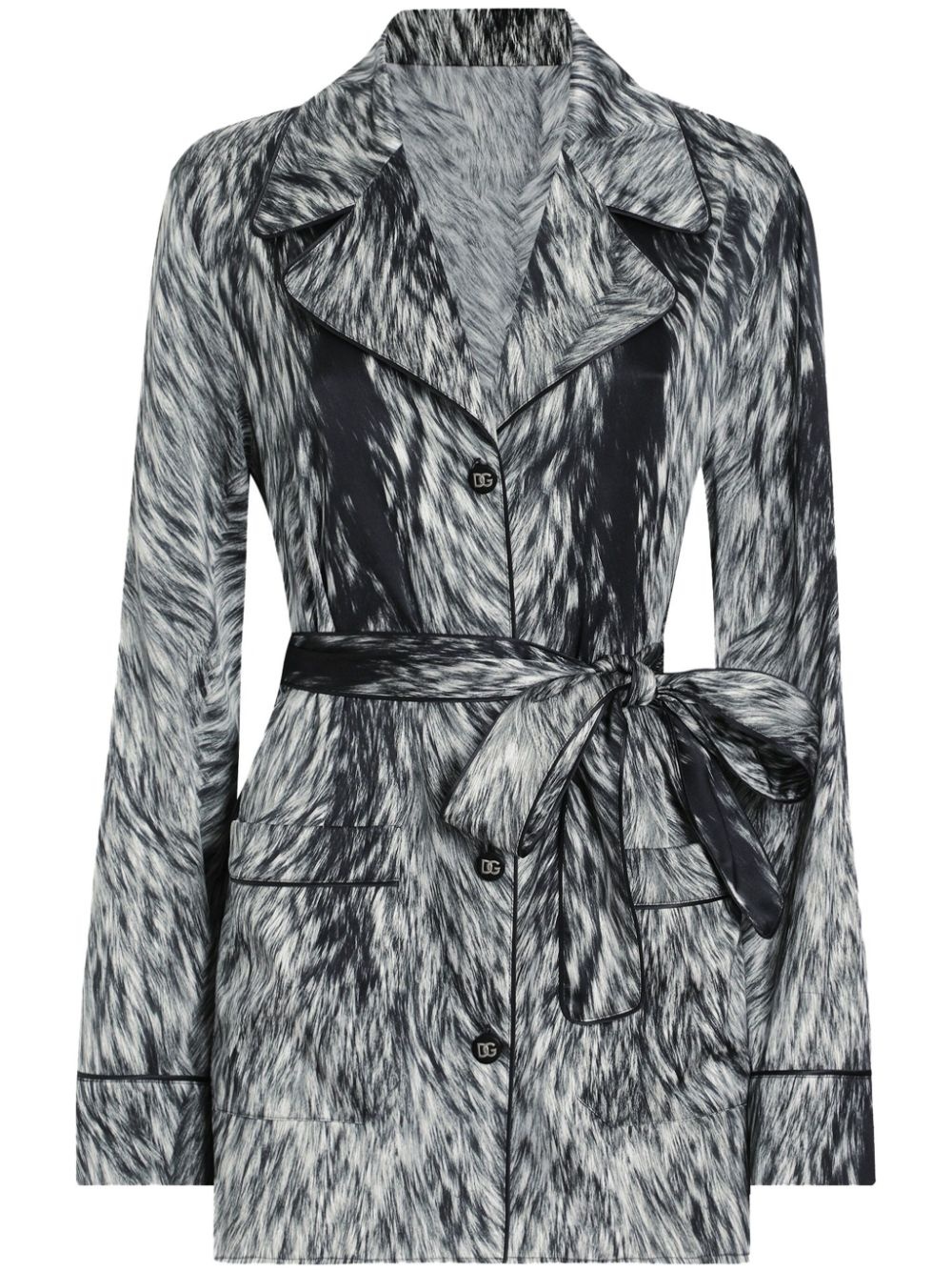 fur-print blouse Highlights - Grey - All-over fur print - Front button fastening - Logo-embossed buttons - Notched collar - Long sleeves - Belted waist - Two side patch pockets - Straight hem Made in Italy Composition Outer: Silk 92%, Spandex/Elastane 8%