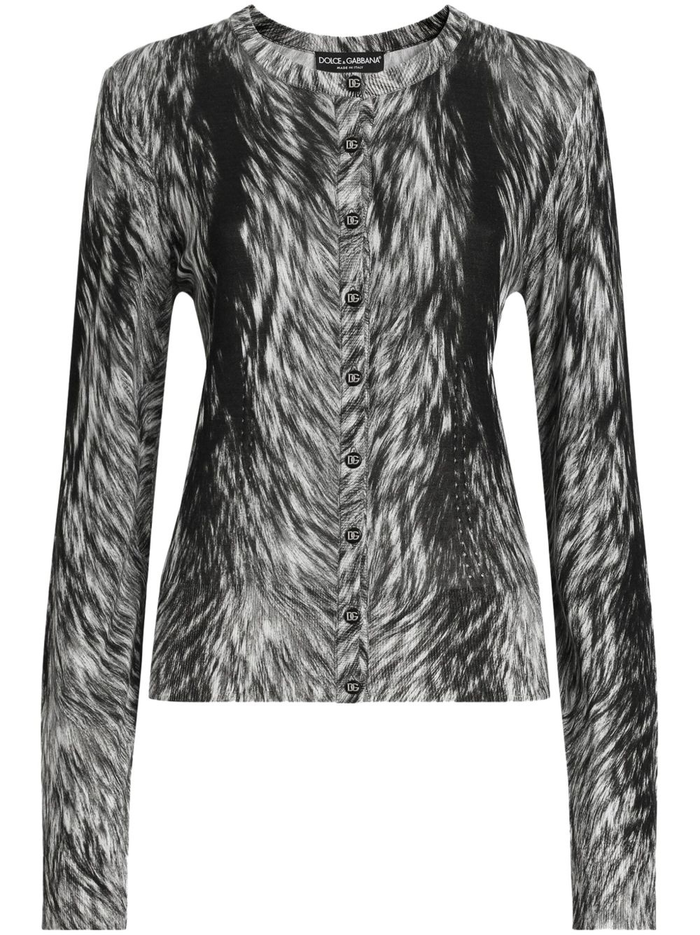 fur-print cardigan Highlights - Black - Button fastening - Round neck - Logo-engraved buttons - Long sleeves Made in Italy Composition Polyester 100%