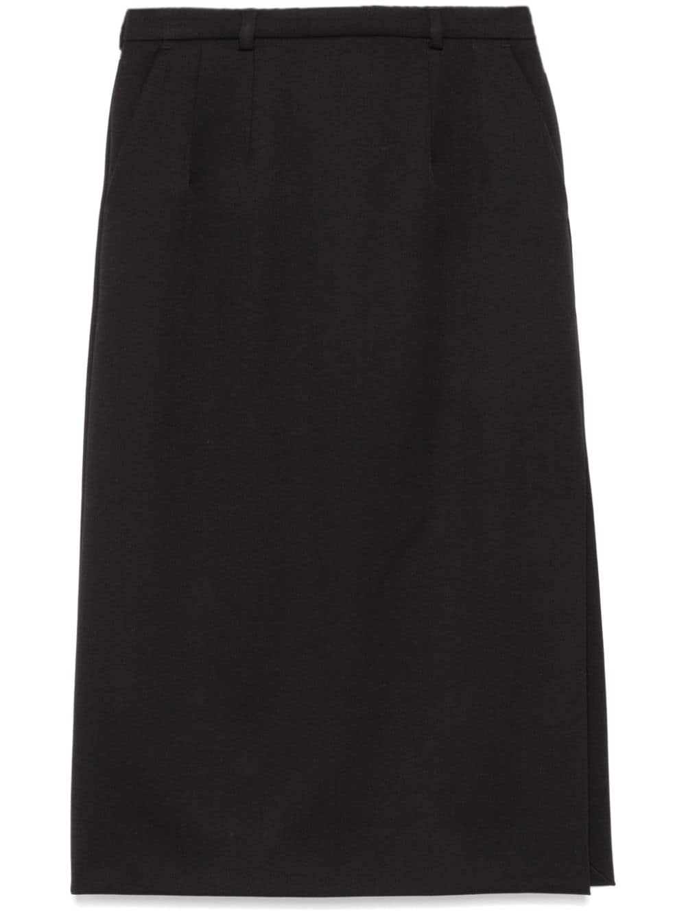 gabardine virgin-wool midi skirt Highlights - Black - Virgin wool - Gabardine weave - Concealed rear zip fastening - High-waisted - Belt loops - Dart detailing - Two diagonal pockets to the sides - Two rear button-fastening jetted pockets - Front slit - Silk lining - Straight hem - Mid-length Made in Italy Composition Lining: Silk 92%, Spandex/Elastane 8% Outer: Virgin Wool 100% SIZE & FIT Model measurements Height 5 ft 9 in(1.75 m) Bust/Chest 34.64 in(88 cm) Hips 36.61 in(93 cm) Waist 26.37 in(67 cm) FittingInformation This midi-length skirt is intended to be worn high on the waist Made from a midweight fabric