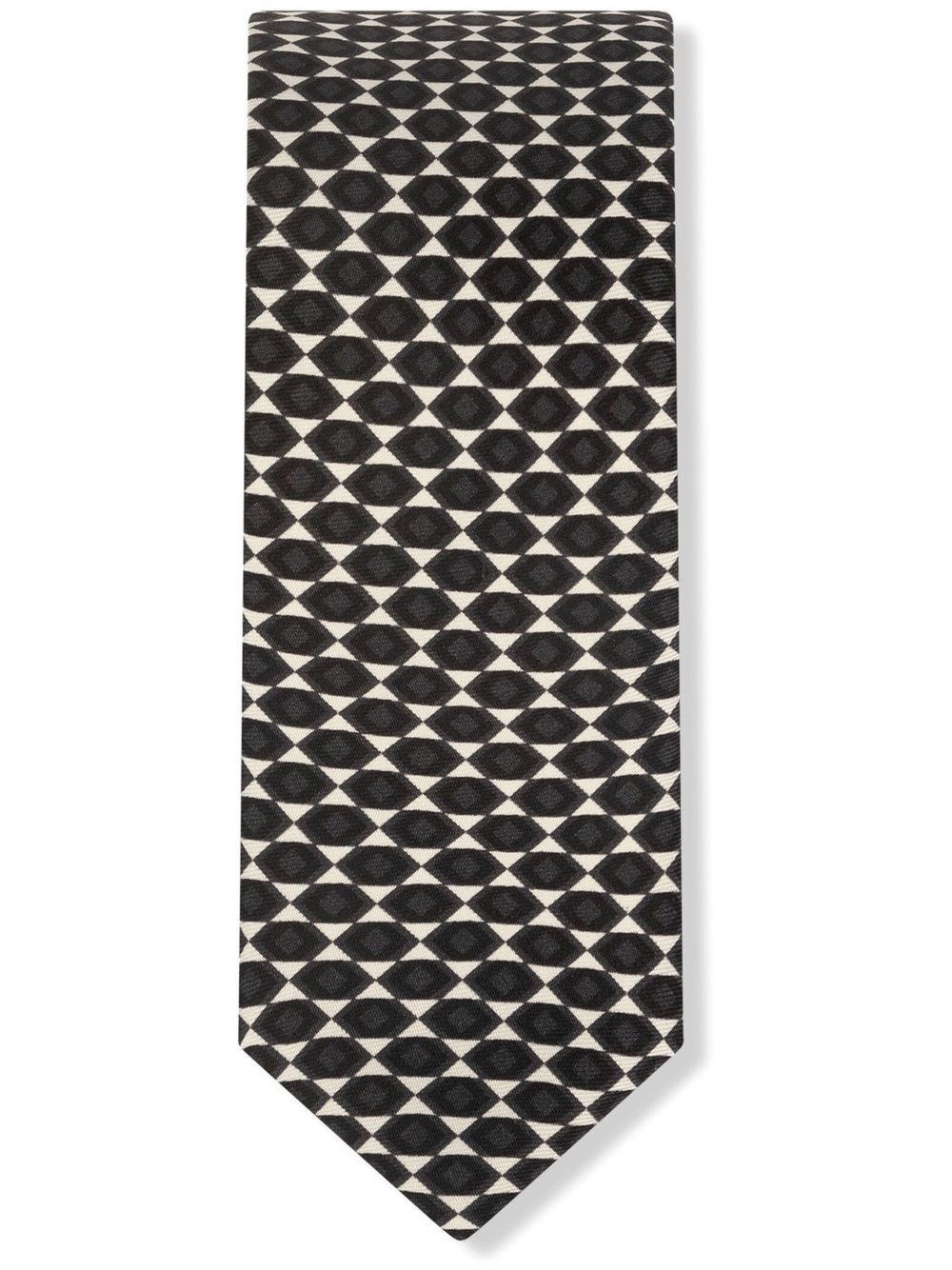 geometric-print silk tie Highlights - Black/white - Silk - Geometric embroidery - Pointed tip - Adjustable fit Made in Italy Composition Outer: Silk 100% Lining: Silk 100%