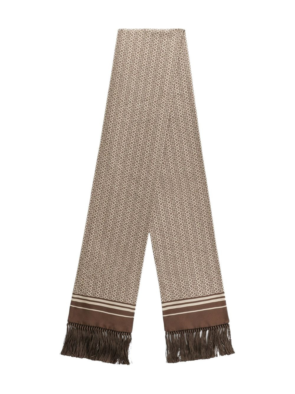 geometric-pattern fringed scarf Highlights - Brown - Geometric pattern - Fringed edges - Monogram motif Made in Italy Composition Silk 100%