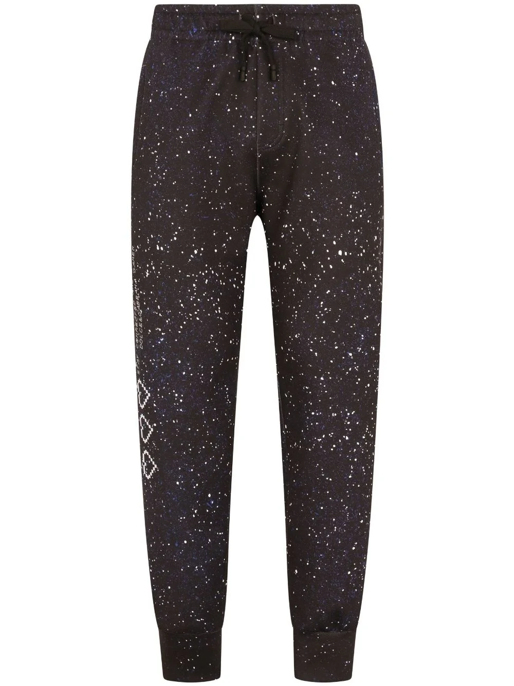 gooDGame-print drawstring track pants Dolce & Gabbana's gooDGame project includes a limited-edition line inspired by the gaming community. As seen on these track pants, the designs showcase a mix of hyper-digitalised lettering and glitch effects to represent the gaming world, while classic logo prints represent the house. Highlights - Brown - All-over graphic print - Logo print to the side - Elasticated drawstring waistband - Two diagonal pockets to the sides - Rear welt pocket - Elasticated ankles - Tapered leg Made in Italy Composition Polyester 92%, Elastane 8%