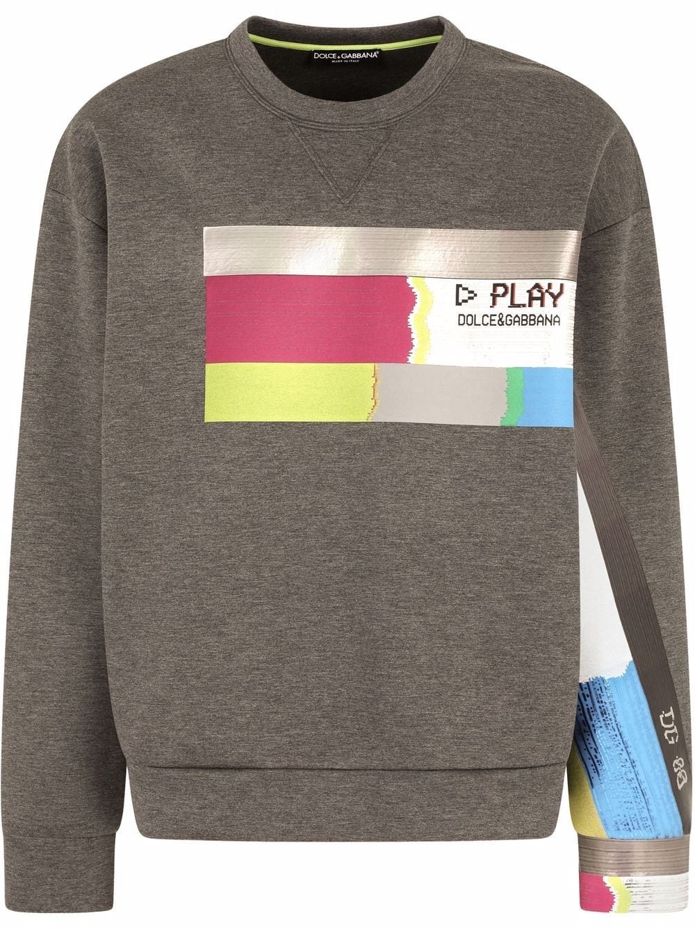 graphic-print cotton sweatshirt fossil grey cotton graphic print at the chest and sleeve logo print to the rear round neck long sleeves straight hem Made in Italy Composition Cotton 100%
