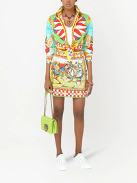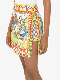 Carretto-print poplin miniskirt The eye-catching aesthetic of the Dolce & Gabbana AW21 is showcased perfectly here. A bold graphic print in multicolour tones draws the eye on this piece. Highlights - Multicolour - Cotton - Graphic print - Pompom detailing - High waist - Slit detailing Made in Italy Composition Cotton 100%