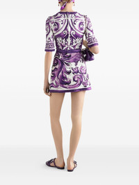 graphic-print mini dress Highlights - Lavender purple - Rear zip fastening - Round neck - Short sleeves - Straight hem Made in Italy Composition Outer: Cotton 47%, Viscose 38%, Linen/Flax 14%, Spandex/Elastane 1% Lining: Silk 91%, Spandex/Elastane 9% Washing instructions Read Manufacturer Guidelines