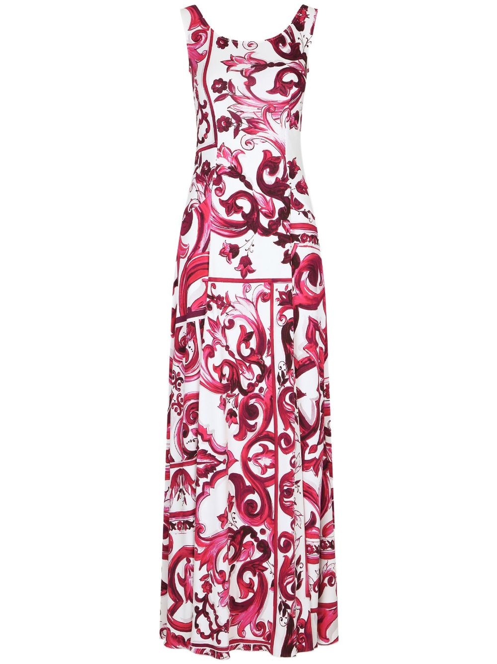 graphic-print sleeveless dress Dolce & Gabbana balances the brand's signature boldness with a sense of refinement on this sleeveless dress from the SS23 collection. Here an eye-catching all-over graphic print is presented in a two-tone palette, creating a maximalist effect. Highlights - Red - White - All-over graphic print - Round neck - Sleeveless Made in Italy Composition Rayon 100%