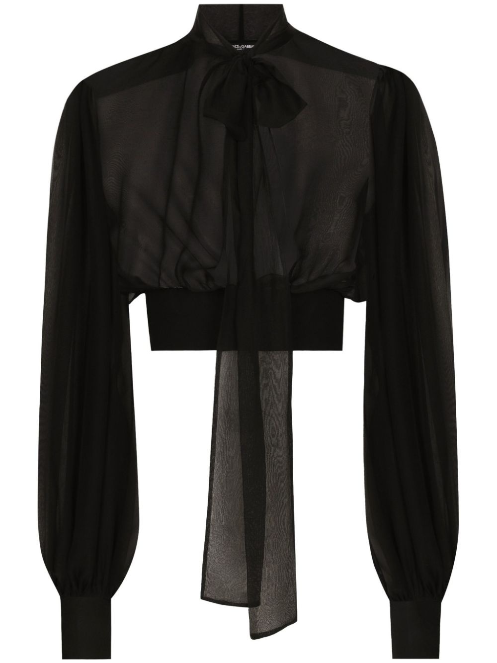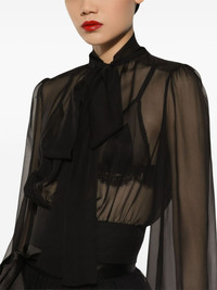 Short silk chiffon pussy-bow blouse