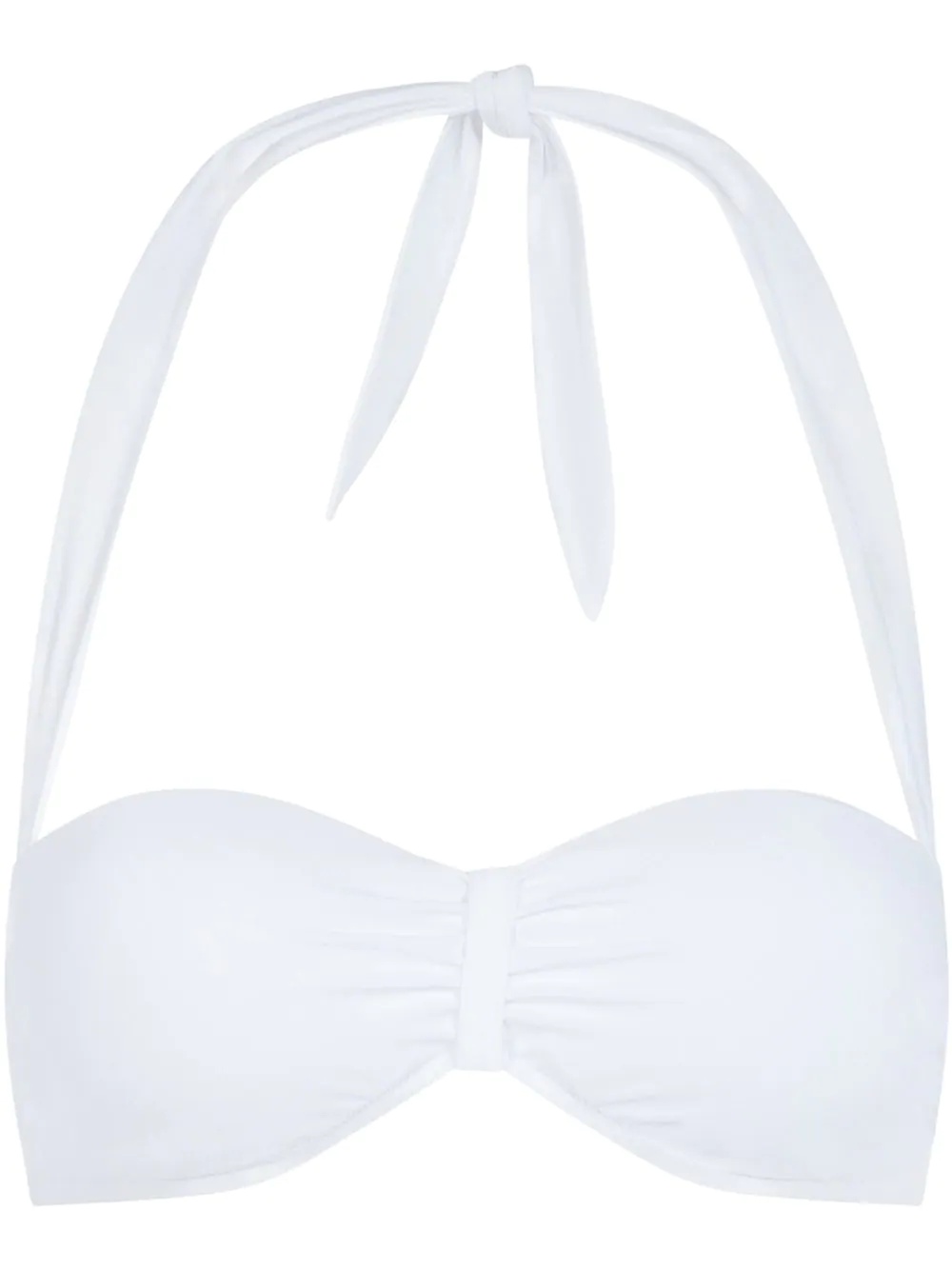 bandeau bikini top Nothing beats a good beach day. To help with that scenario, Dolce & Gabbana created this halterneck tie fastening bikini top so you can be well-dressed while enjoying it. Everything is right. Highlights - White - Halterneck tie fastening - Rear clasp fastening - Gold-tone hardware - Be mindful to try on swimwear over your own garments. Made in Italy Composition Nylon 80%, Elastane 20%