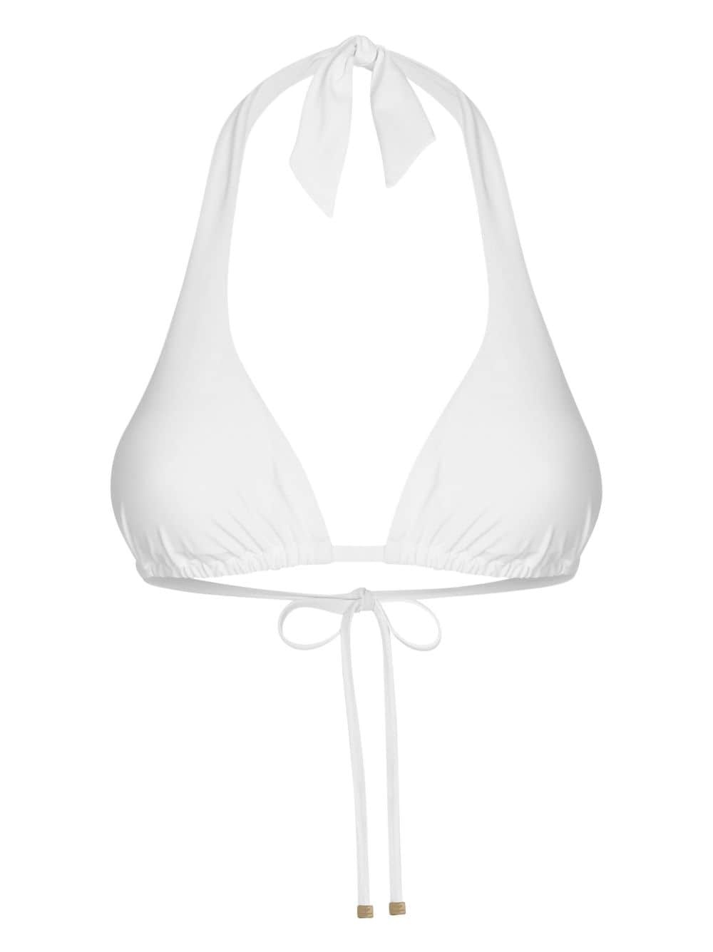 halterneck triangle bikini top Highlights - White - Stretch-design - Engraved logo - Halterneck tie fastening - Rear tie fastening - Triangle cup - Be mindful to try on swimwear over your own garments. Made in Italy Composition Lining: Nylon 80%, Elastane 20% Outer: Nylon 72%, Elastane 28% Washing instructions Read Manufacturer Guidelines