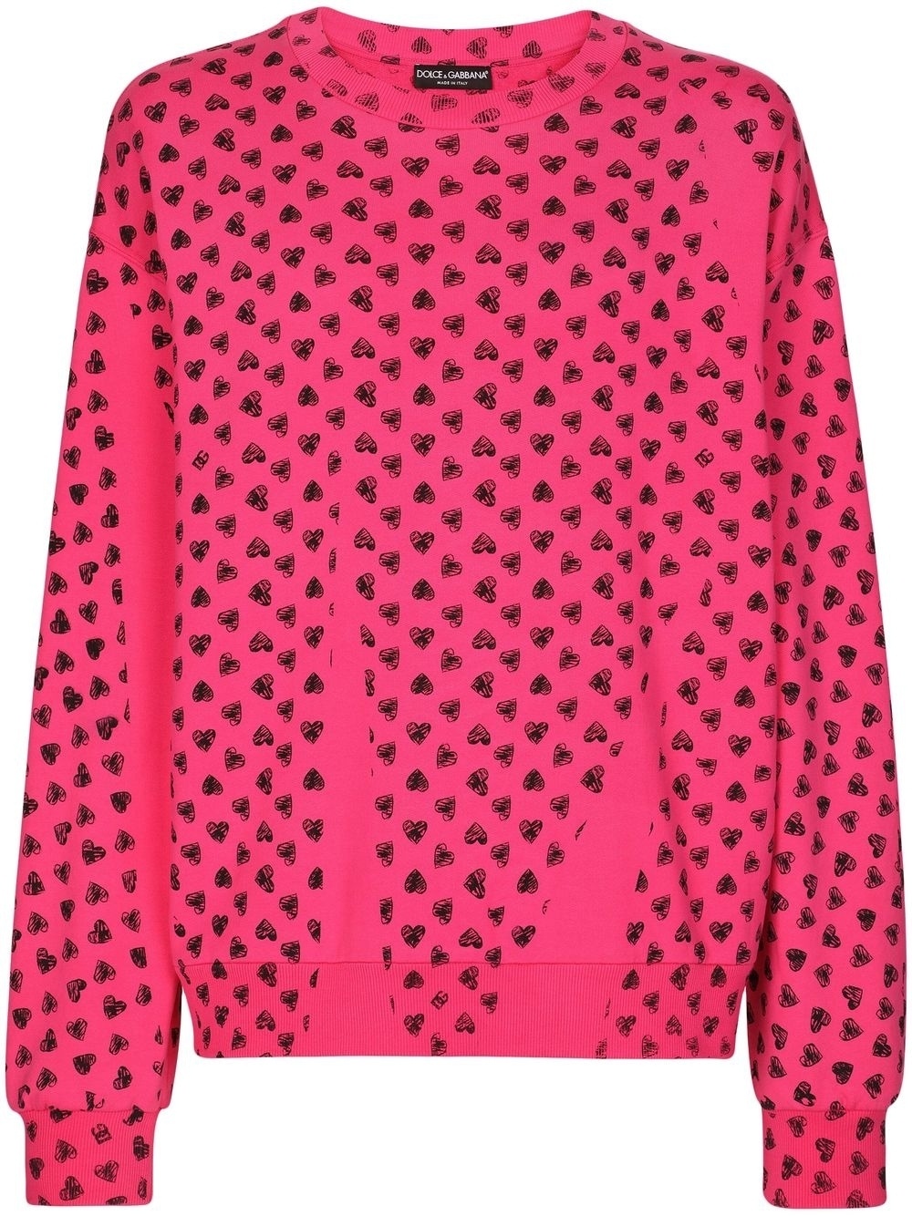 heart-print long-sleeve sweatshirt flamingo pink cotton jersey knit heart print ribbed-knit edge crew neck long sleeves straight hem Made in Italy Composition Cotton 100%
