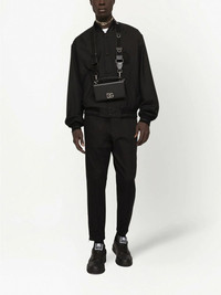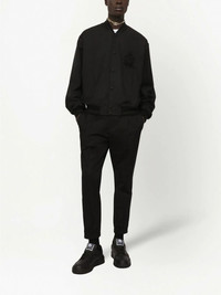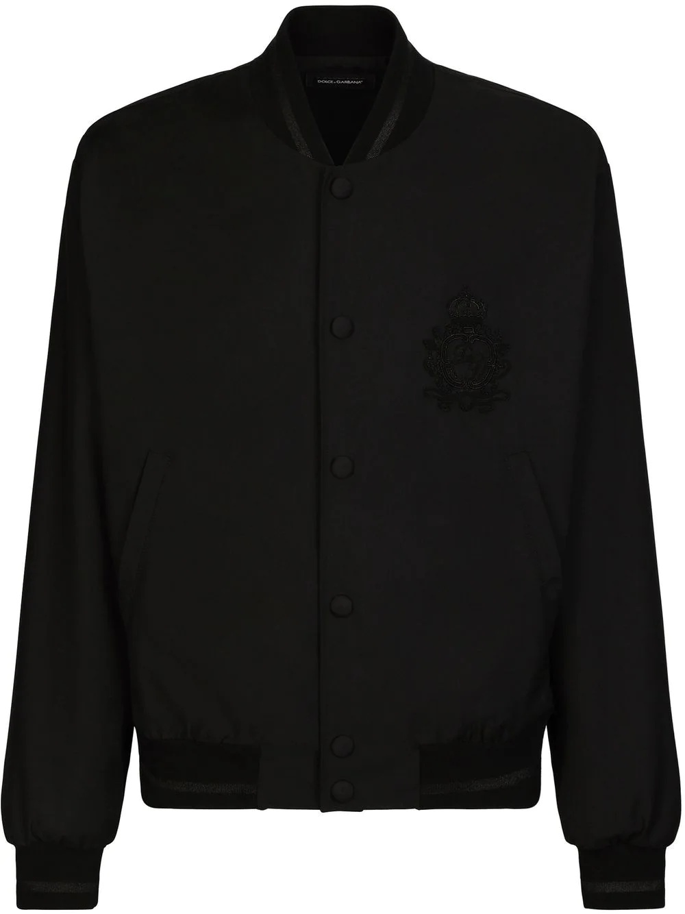 heraldic-patch bomber jacket Highlights - Black - Embroidered logo to the front - Band collar - Press-stud fastening - Long sleeves - Elasticated cuffs - Elasticated hem - Two side slit pockets Made in Italy Composition Polyester 84%, Rayon 16%