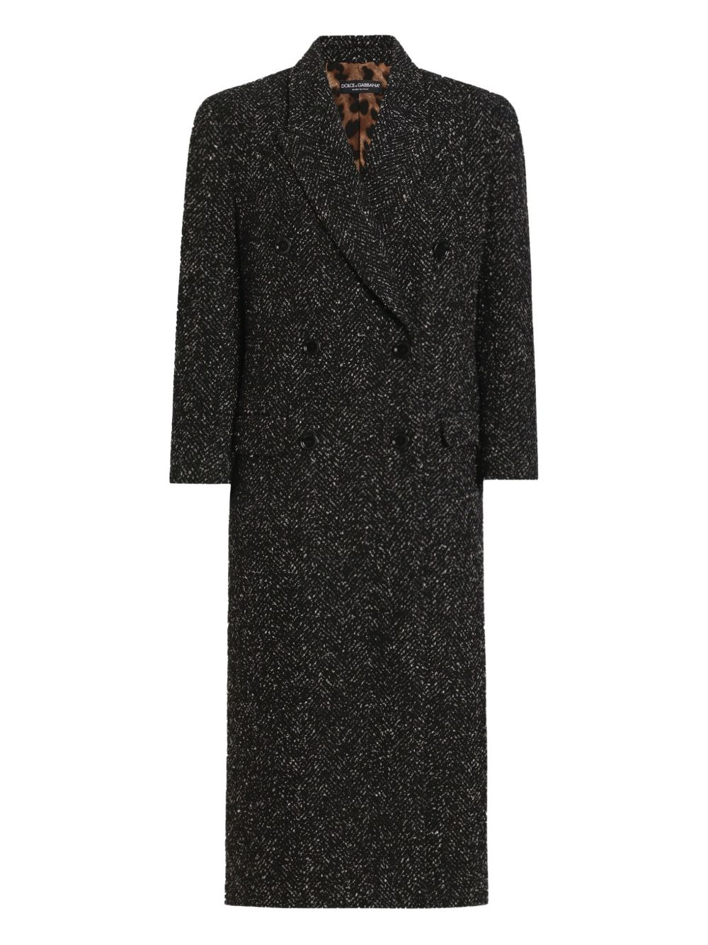 herringbone-pattern double-breasted coat