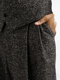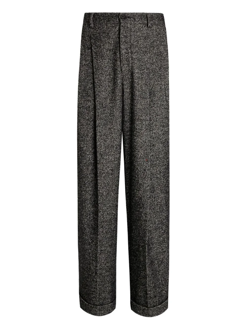 herringbone pleated trousers Highlights - Dark grey - Herringbone pattern - Pleated front - Side pockets - Cuffed hem Made in Italy Composition Virgin Wool 48%, Wool 35%, Polyamide 16%, Elastane 1% Washing instructions Read Manufacturer Guidelines