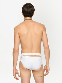 logo-tag swim briefs Highlights - White - Stretch-design - Silver-tone logo plaque - Strap detailing - High cut - Be mindful to try on swimwear over your own garments. Made in Italy Composition Polyamide 72%, Spandex/Elastane 28%